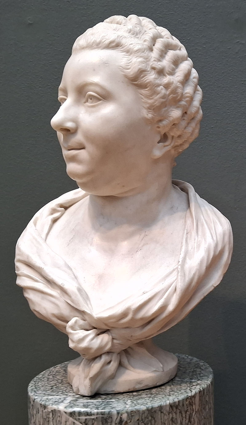 Description: These busts represent the daughters of the architect Jean-Charles Garnier d'Isle, Pigalle’s friend and colleague. They exemplify the probing realism and sensitive portrayal of personality typical of Pigalle’s approach to portraiture. The sculptor carved the fleshy, dimpled features of the sitters with little idealization. Brigitte, the elder sister, is alert and dignified, while Adélaïde, the younger sister, appears more exuberant and lighthearted. Although probably not intended as pendants, the busts gain a psychological depth and a bond of intimacy when displayed together.