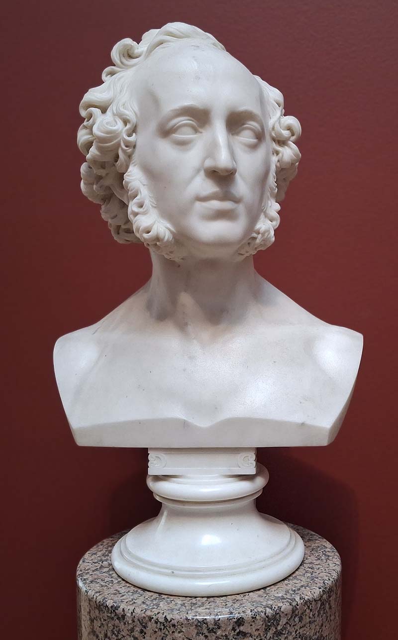 Classical Style: In the manner of ancient busts, Rietschel represented his subject "truncated," meaning he abruptly cut the shoulders in half.