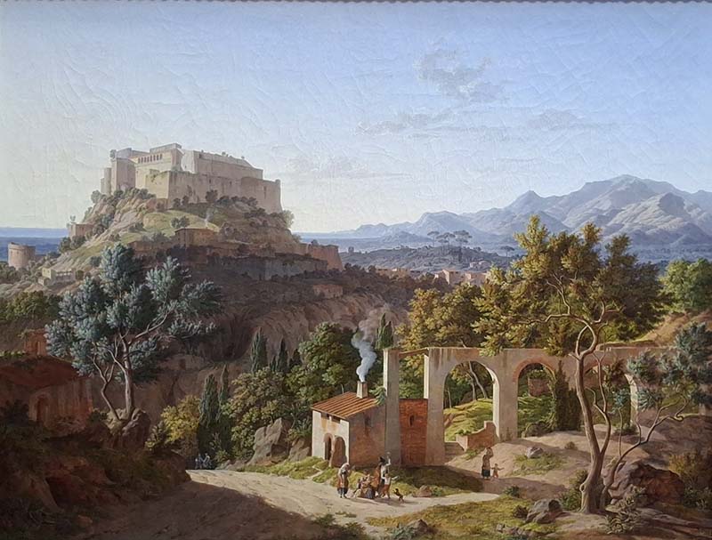 Description Klenze, primarily known for his accomplishments as the chief architect and head of public works in Munich from 1816 to 1864, was also a talented painter. In his Munich studio he re-created this view of Massa, a town near Genoa, working from the many sketches he had made in Italy seven years earlier. The integration of landscape and man-made elements reveals an architect's sensitivity to issues of spatial construction.