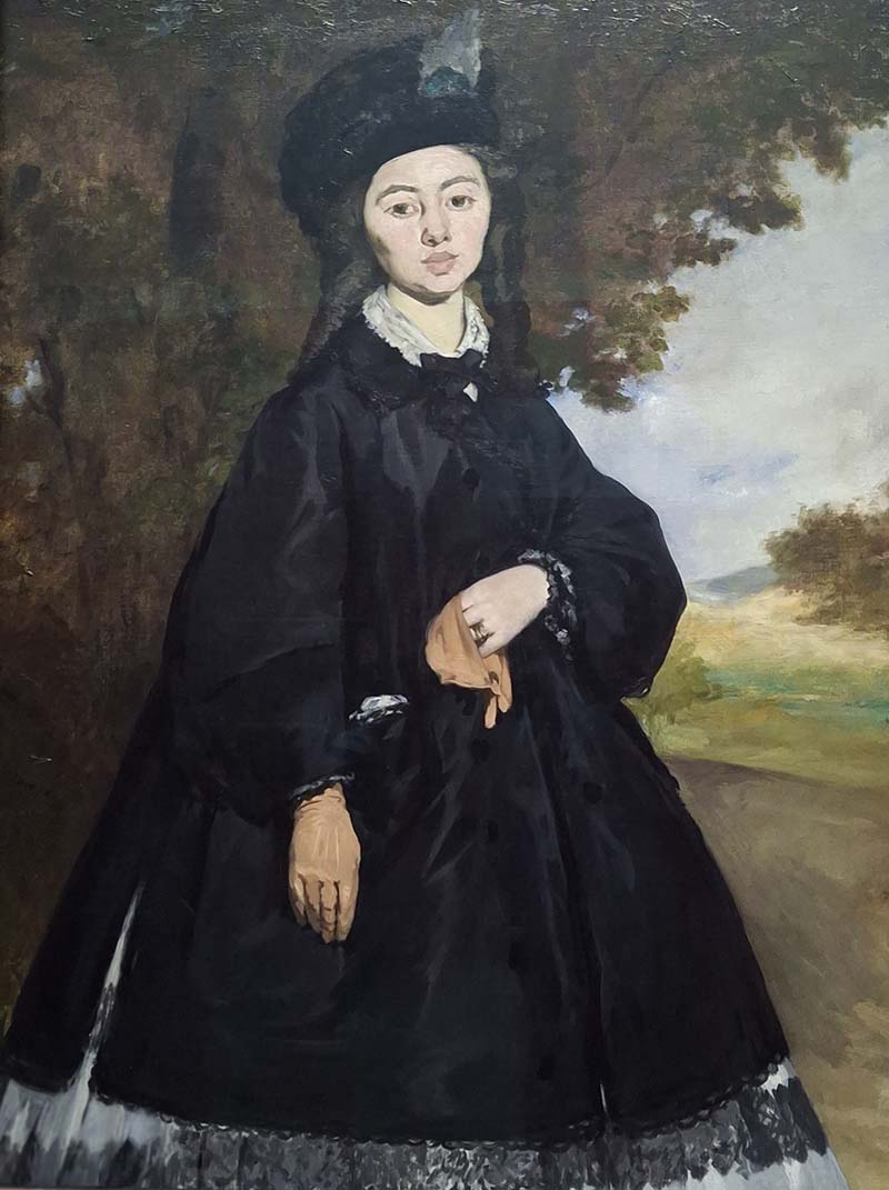 This portrait's bold brushwork, stark contrasts of light and dark, and frank presentation of the model reflect Manet's passion for seventeenth-century Spanish painting and impatience with the portrait conventions of his day. Madame Brunet, the wife of an artist friend, rejected the painting on account of its perceived ugliness. Retaining it in his studio, Manet eventually cut off the bottom portion of the canvas, reducing it from a full-length to a three-quarter-length portrait. He then displayed it in his one-man exhibition in Paris in 1867—a show of independence opposite the official survey of French painting that was part of the World's Fair that year.