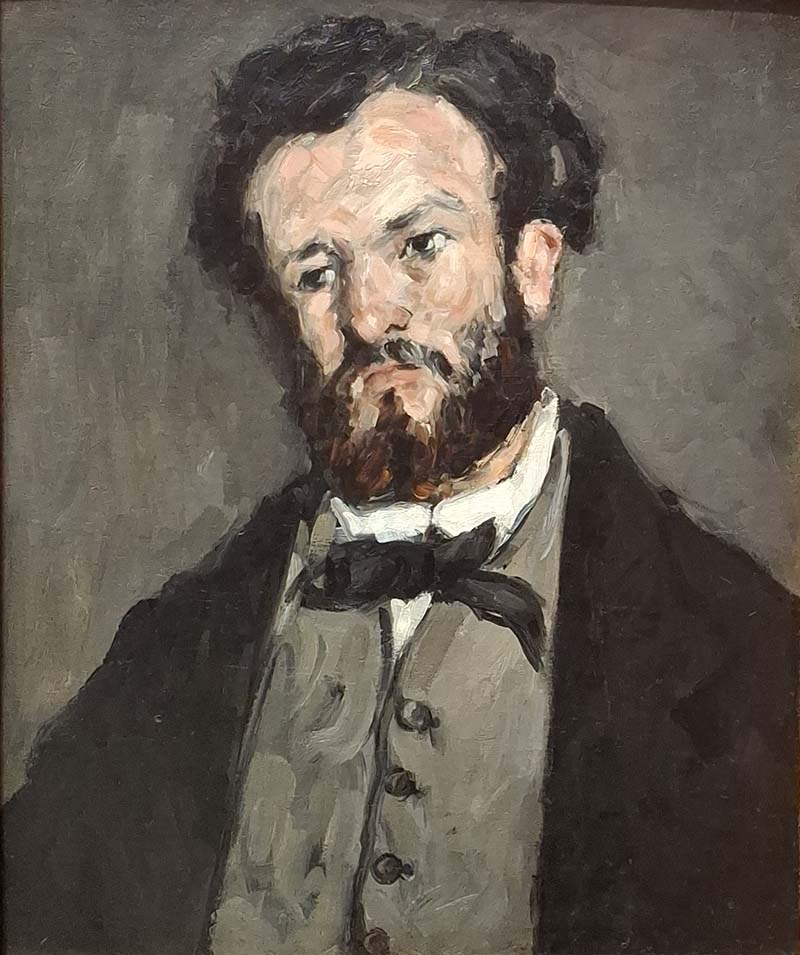 Cézanne's friend since childhood, the poet Anthony Valabrègue wrote mockingly in a letter to a mutual friend, "Every time he paints one of his friends it seems as though he were revenging himself on him for some hidden injury." Valabrègue refers to the slabs of paint that convey his distinctive physiognomy: broad forehead, high cheekbones, strong nose, rough beard. Working with a nearly monochromatic palette, Cézanne varied the thickness of the surface to animate an otherwise austere portrait.